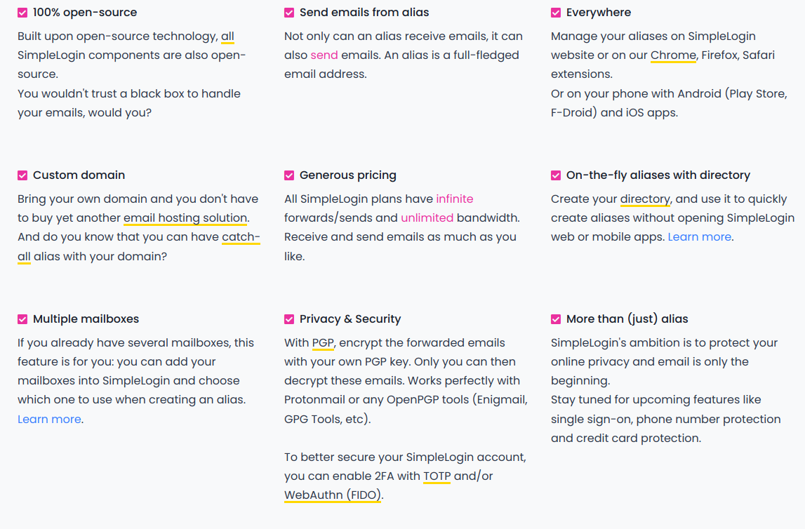 SimpleLogin allows you to protect your privacy by acting as an anonymising middleman between a service and your inbox. Using SimpleLogin allows you to defend yourself against spam, phishing and data breaches.